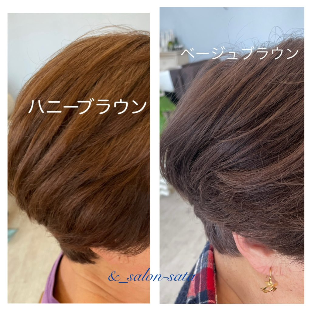 ブラウンベースの方が黄色味が強かったり